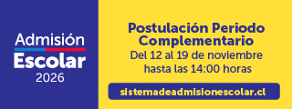 Entre las 09:00 horas de este mi茅rcoles 12 y las 14:00 horas del mi茅rcoles 19 de noviembre las familias que no postularon en el Periodo Principal, que quedaron sin asignaci贸n o que rechazaron el resultado, deber谩n postular a establecimientos con vacantes disponibles.