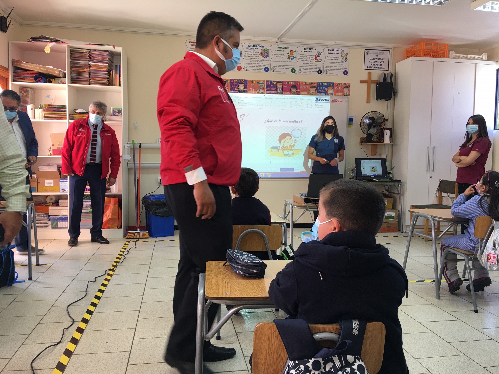 En un breve saludo, el gobernador felicitó a la comunidad educativa por el estricto cumplimiento de las medidas de prevención: toma de temperatura, entrega de alcohol gel, zonas de tránsito delimitadas, uso permanente de mascarillas, etc. y destacó el trabajo y decisión del presidente Piñera y el ministro Figueroa para, respectivamente, enfrentar la pandemia, y apoyar a las comunidades educativas en su regreso a clases presenciales y mixtas.
