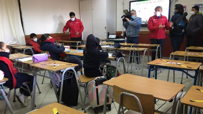 Prieto destacó los aportes monetarios y de liberación de fondos que el Gobierno ha hecho para que los sostenedores – municipios y corporaciones – puedan mejorar instalaciones y procedimientos y recalcó la crucial importancia de las clases presenciales para la enseñanza de niños y niñas.