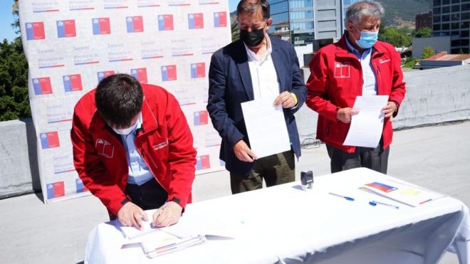 Alegría y satisfacción fueron las opiniones unánimes de los alcaldes presentes en la ceremonia de firma con que se formalizó la entrega de $3 mil 325 millones de pesos a una docena de escuelas y liceos de la región.