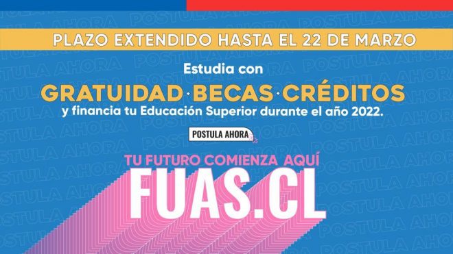 “Hoy estamos ampliando nuevamente el plazo de inscripción para que las y los jóvenes que, por diversos motivos no han podido postular, puedan hacerlo tranquilamente. Por esto, llamamos a todas y todos quienes requieran de algún beneficio estudiantil a que ingresen a www.fuas.cl y completen el formulario online que les permita acceder a gratuidad, becas o créditos”, afirmó la subsecretaria de Educación Superior, Verónica Figueroa Huencho.